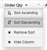 The order review pane can be sorted by clicking on any column header. Clicking on the down arrow on the far right of any column brings up a context menu that will allow additional actions including clearing the sort and hiding the column.
